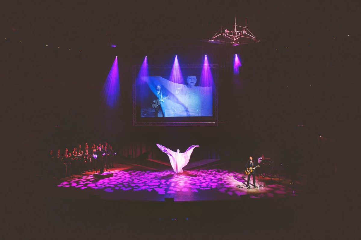 The work of the afternoon over, the evening begins with Tim Arnold singing his song. A man alone on a huge stage with touching epic ballad with the most non-judgemental simplicity. "He for She. She for He? He for He? She for She?" and on the screen behind him the portraits of the day flash by. He then performs it again but this time with pianist Emmanuel Vass whose technique lifts and swirls with refined classicism, as the Manchester Lesbian and Gay Chorus elevate the proceedings to near monumental pathos. It is all being recorded and filmed so a second take is required but by this point the audience is transfixed and transported and are only too glad to have a third hearing.