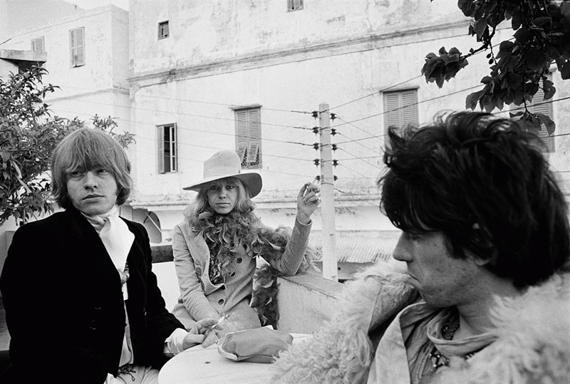 Then it was time to bear witness to the blazing trajectory of Anita Pallenberg, Rock Chick Uber Alles, in a league of her own you could say, a powerful female shaman in her own right, a Lilith-figure who had Brian and then Keith with a side order of Mick, who even out-did Marianne Faithfull in the Ultimate Stones Bad Girl pantheon, a (dis)Honor Roll whose ranks stretch back to the early '60s and roll on to the last syllable of recorded time and include chanteuse Nico (knocked up and abandoned by Brian), singer/actress Marsha Hunt (knocked up and abandoned by Mick), German tv presenter/left-wing poster girl Uschi Obermaier (who had the signal pleasure of tearing Keith's earring out of his ear with her teeth during wild sex, leaving him and his bloody earlobe glued to the pillow when he came to next morning)—with special mention going to Mandy Smith who began an affair with Bill "Perks" Wyman at age 13—Bill enjoyed his perks!—and finally wed him 5 years later when she came of legal age in a marriage that lasted only 23 months.