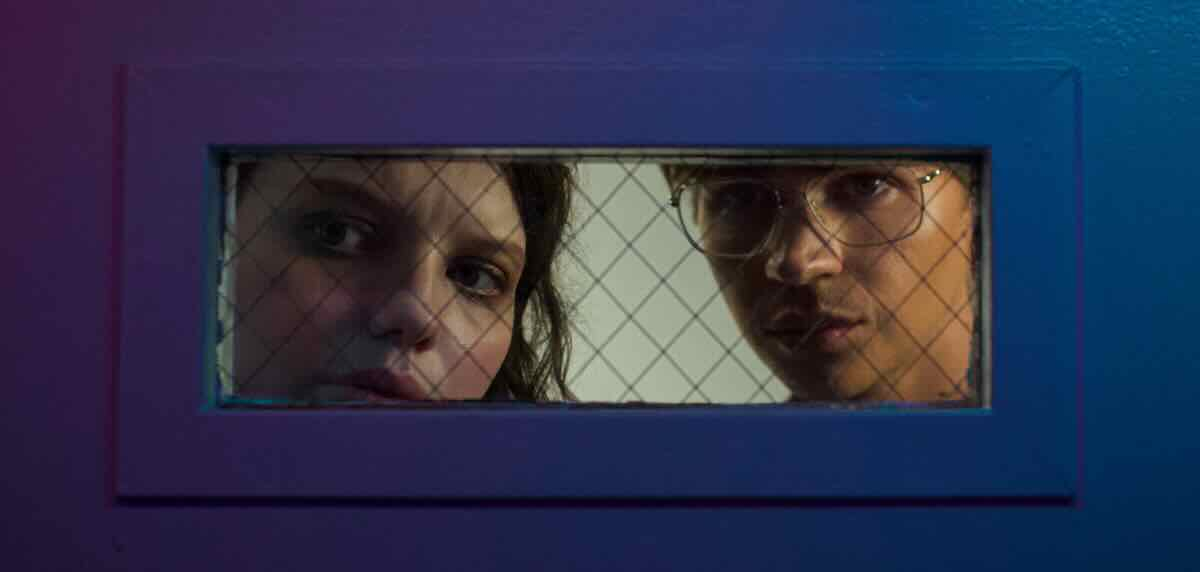 As Gemma, Chloë Levine gives a layered performance, going convincingly from innocent to desperate. As comically innocent as she appears in LA, in flashback she shows realistic passion with her boyfriend Hunter, played by an equally fine Peter Vack (Ms. Levine’s voluptuous features contrast nicely with Mr. Vack’s lean look). She is uncertain in her growing reliance on the punk-coiffed and hedonistic Brooks (played by Johnathon Schaech; good to see him again) who challenges her to become her true self. Will Peltz as Noah and Clarisa Thibeaux as Olivia, Gemma’s enigmatic coworkers, also do admirable work.