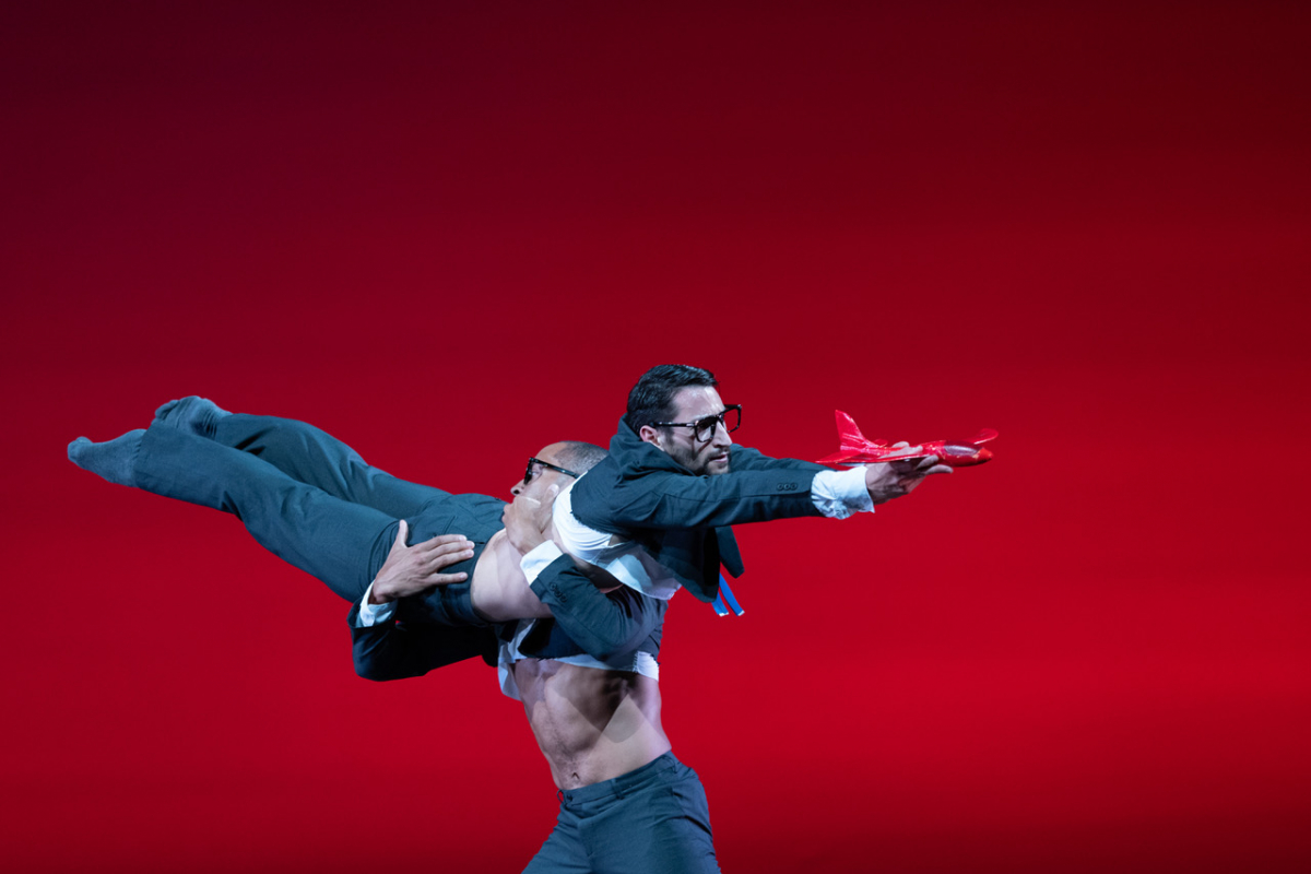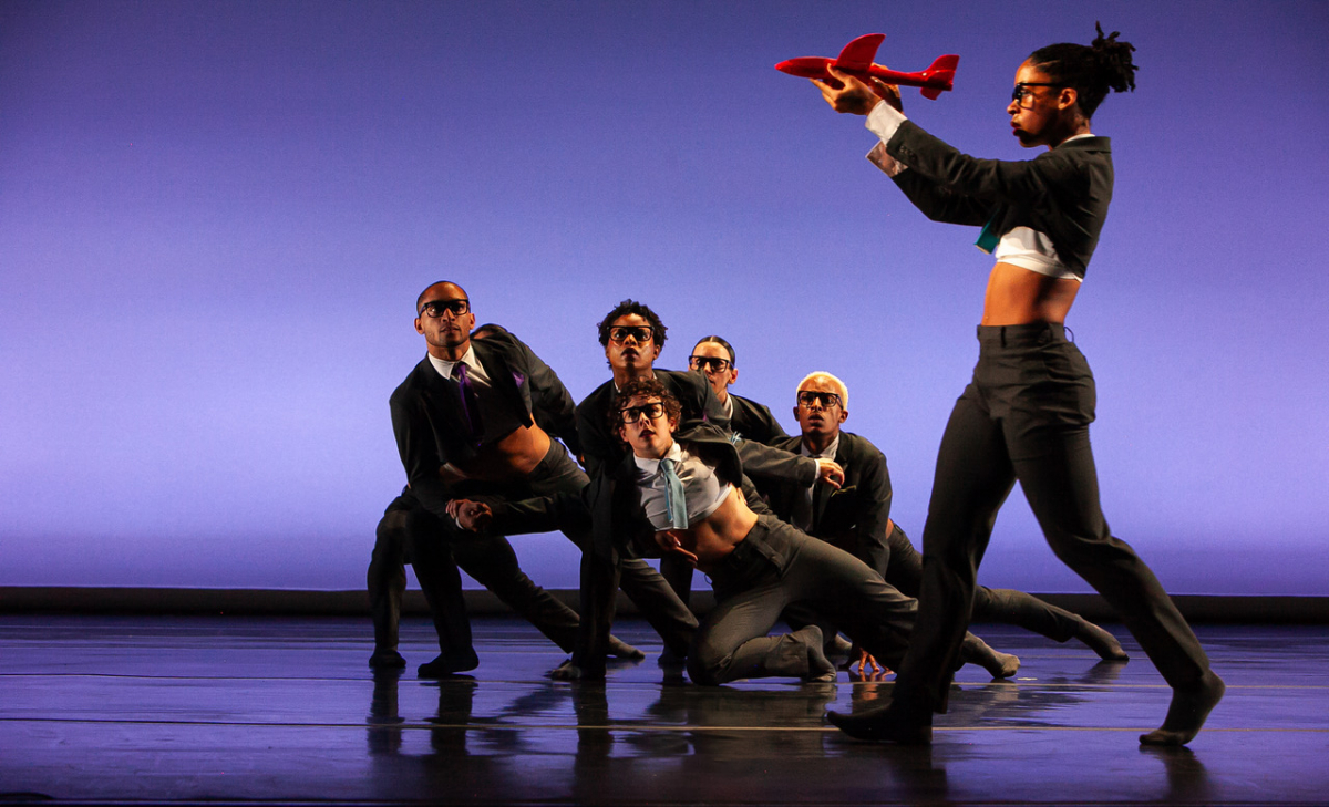 The initial dance, "Mayday," includes the timeless music of Buddy Holly and explores how life might be cut short at any moment–and how we carry on regardless, as if "tomorrow" is guaranteed (while knowing full well we never possess such certainty). Throughout this dance, a bright red model airplane is prominently carried and handed off from dancer to dancer, always remaining aloft. Each Buddy Holly song has its own "dance," the choreography is decidedly on the athletic side, including marvelous solos and beautifully crafted ensemble work, concluding with a wistful note. "Mayday" was created by multiple award-winning choreographer Trey McIntyre, who founded his dance company, the Trey McIntyre Project, in Boise, Idaho.