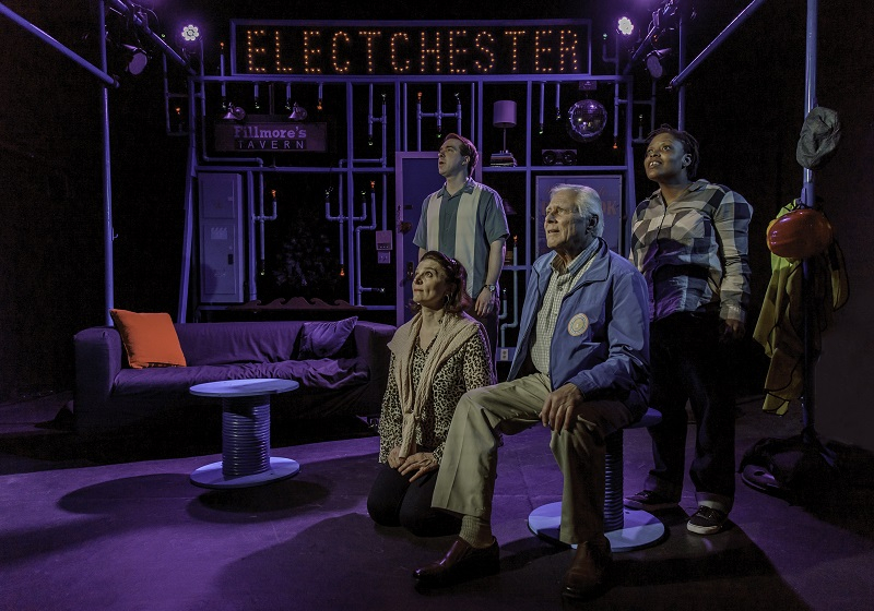 Sean's experiences in the play both echo and counterbalance Luke's. Through Elena, Sean discovers that he enjoys cosmic bowling in addition to dancing on the subway, but even as Sean crosses the divides between Pomonok and Electchester and even in this place of camaraderie among the workers, one man leaves in protest of the presence of "low-grade minorities" who have ruined how things "used to be." Even Sal (Robert Arcaro), a sort of elder statesman of Electchester and one of the strongest advocates for and drivers of the community that it creates (or can create) turns out to have some behavioral and attitudinal skeletons in the closet of his past. However, none of this means, in the play's view, that we should give up on "social experiments" like Electchester. Sal also both represents and articulates the idea that things can and do change, and that the most important question is what we do now with what has been built. While problems and strains between individuals and between individuals and the community persist, Jerry (Brian Sgambati), who acts as a narrator, tells the audience that Electchester saved him, and Sal implores that we not forget so easily that people once died to sustain the conditions and community that allowed something such as Electchester to exist. In conversation with Sal, Elena posits that we need to do terrifying things to effect change; thus, improvement may be slow and painful, but that doesn't mean that it is not possible. Jerry raises the assertion that if you want to know people, you must know their dreams; and that requires dialogue, the kind of dialogue that Alternating Currents encourages and contributes to both onstage and off.