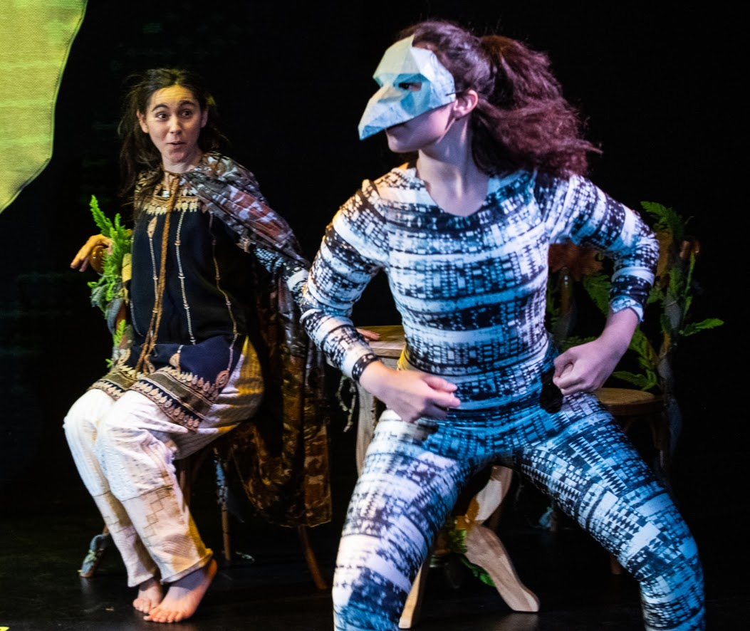 The play opens with present-day Sycorax (Sandra Bargman), now part of the 500-year old sorceress demographic, explaining that she has waited hundreds of years to tell her side of her own story and is now live-streaming it to as close as the internet can get to literally everyone in the world. We watch her younger self (Lauren Capkanis) pour her energies into carving small wooden animals as her religious family pushes her away from reading and towards marriage, while her brother, Rachid (Nick Giedris) is allowed to continue his education. In Algiers, she is set apart not only by her literacy but also by her blue eyes, which put her under suspicion of being a witch -- rightly, of course, but this Sycorax is someone who wants to use her budding skills to remake the world in ways that will help others. She retains that desire to help others even through an unhappy stint as one of the multiple wives of an older man, but she is nevertheless eventually exiled for using magic, despite her magic having helped the very men who exile her and despite her being pregnant.