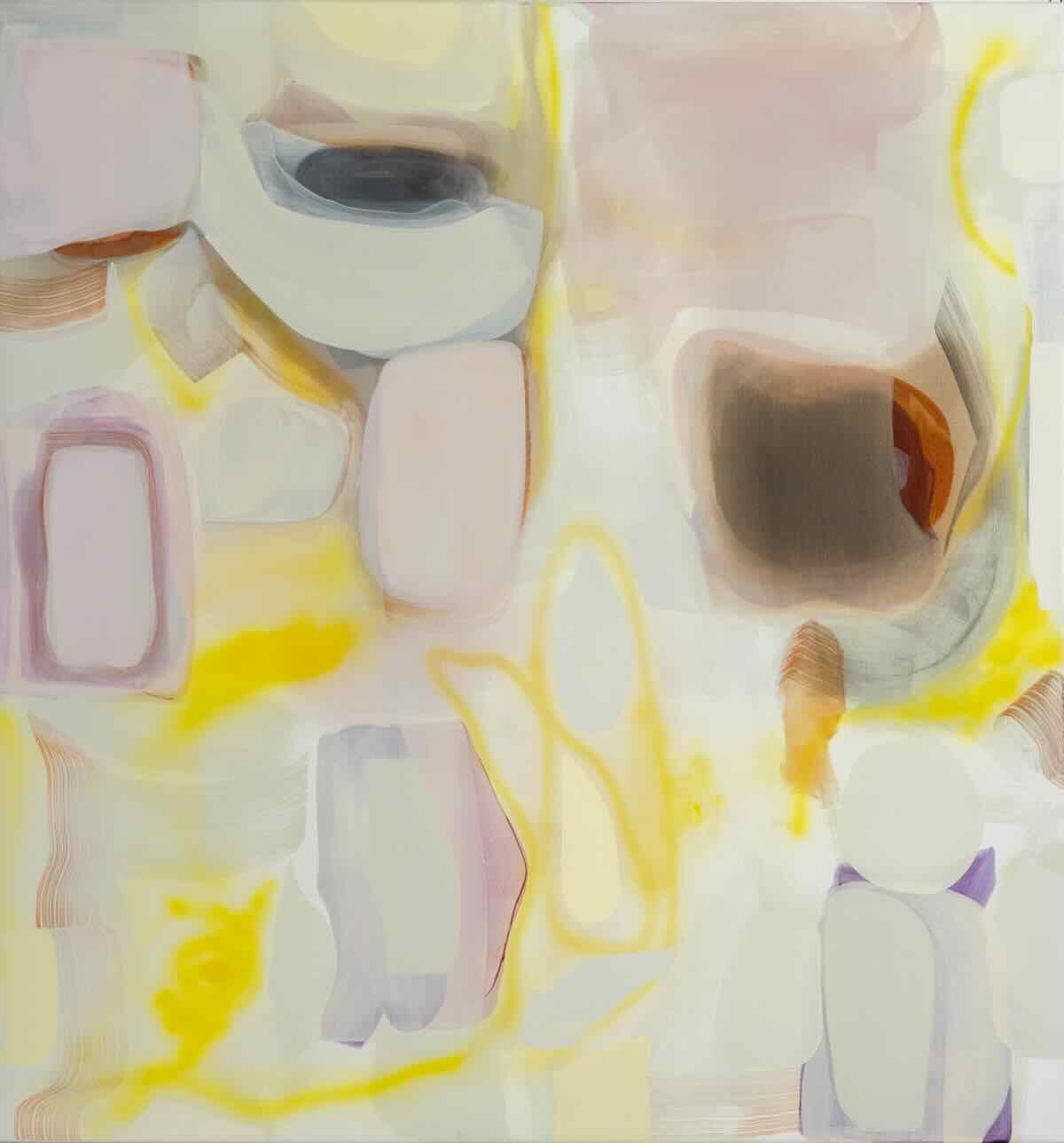 The intense cool white of the canvas behind the lightly washed color of Hansina Iversen (above) ethereal has the scale and feeling of the New York School of Painters who pushed size as much as they could.  Iversen's organic forms move back-and-forth within the canvas, pushing the medium towards the immaterial.