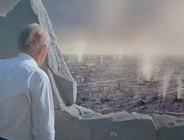 Lithgow is especially effective as Professor Joe Huxley, his last name most likely screenwriter Humes’s nod to Aldous Huxley’s bleak 1948 anti-nuclear war book, Ape and Essence. At the conclusion of the final hour of The Day After’s bruising no-redemption narrative where many poignant storylines and characters have either been terminated, cut short, or trailed off into oblivion in the glare of atomic annihilation, the film fades to black with Huxley's urgent, plaintive appeal over his makeshift short-wave radio (a device possibly inspired by Steely Dan's memorable 1973 song "King of the World"):